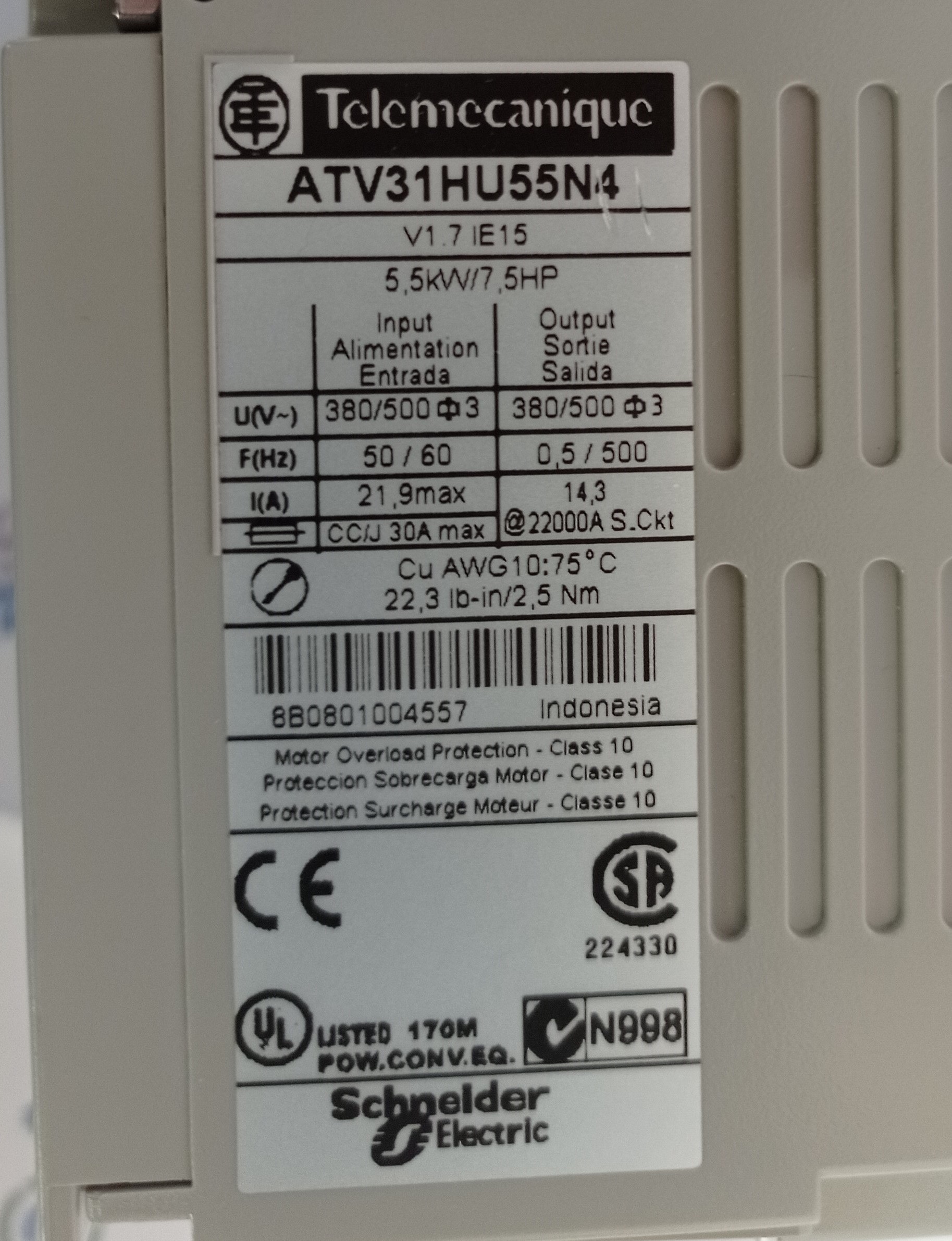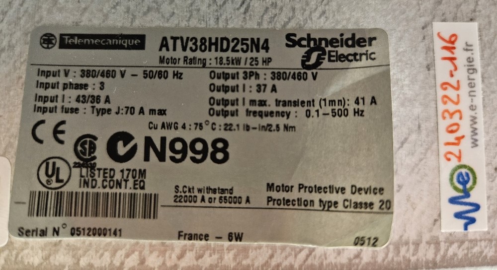 Add to basketQuick ViewTélémecanique, Tous, VariateursATV452D37N Telemecanique 37 Kw 50 HP ATV452