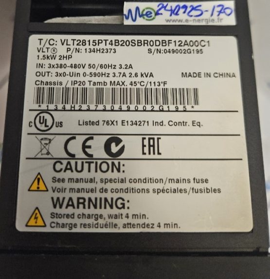 Refurbished Danfoss 134H2373 VLT2815PT4B20SBR0DBF12A00C1 inverter