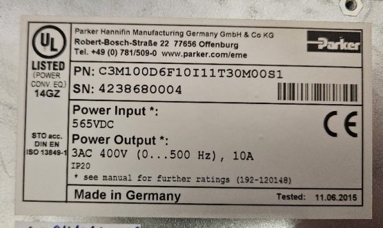 New Parker C3M100D6F10I11T30M00S1 Speed Drive