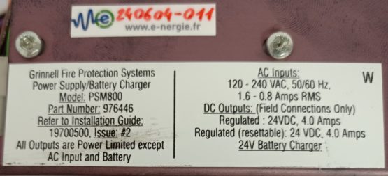 Refurbished Power Supply for detection control panels Grinnell PSM800 PSM-800 power supply – 220VAC – 24VDC
