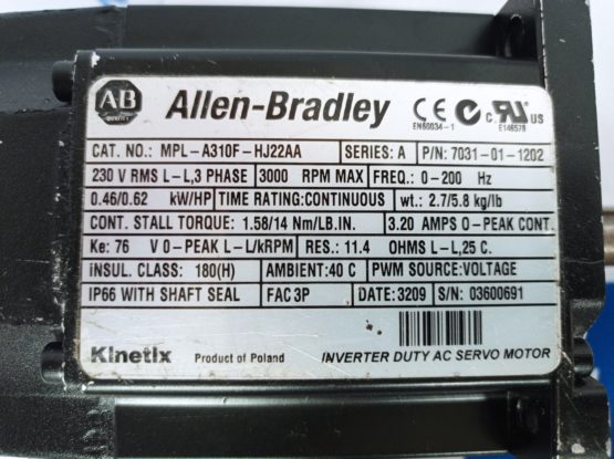 REFURBISHED ALLEN-BRADLEY MPL-A310F-HJ22AA motor