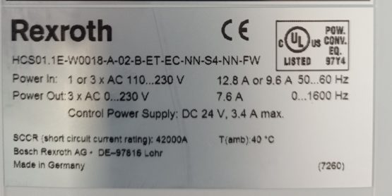Refurbished IndraDrive Cs HCS01.1E-W0018-A-02-B-ET-EC-NN-S4-NN-FW Rexroth