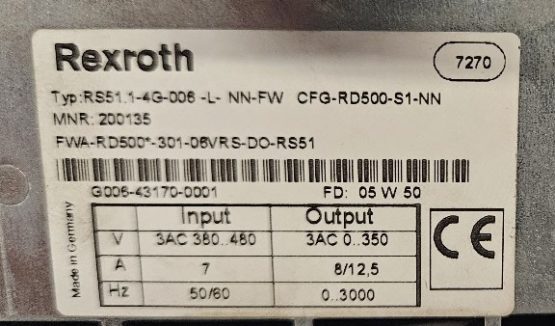 Refurbished Rexroth RS51.1-4G-006-L-NN-FW CFG-RD500-S1-NN FWA-RD500*-301-06VRS-DO-RS51 Speedrive